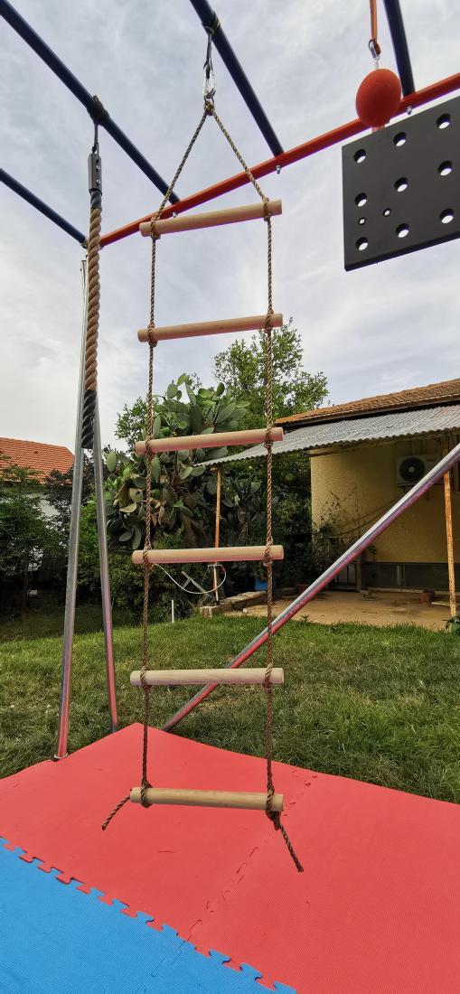 סולם חבלים- סולם של 6 שלבים. רוחב 40 ס"מ, גובה 170 ס"מ. תוספת מעולה למתקן נינג'ה! *האחיזה מגיעה עם טבעת חיבור *שימו לב- הסולם מגיע ללא רצועה* להוספת רצועות לחצו כאן **התמונה להמחשה בלבד.