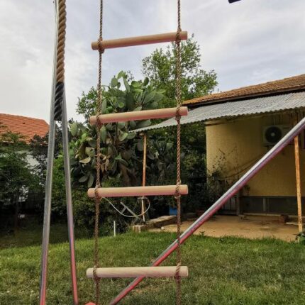 סולם חבלים- סולם של 6 שלבים. רוחב 40 ס"מ, גובה 170 ס"מ.
